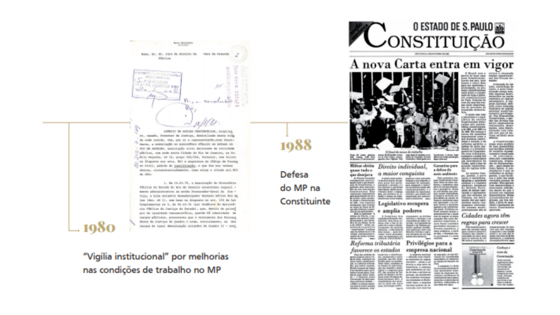 Momentos de inflexão não faltaram nesta caminhada. Um dos mais significativos foi em 1980. A chamada “vigília institucional”, protagonizada pela Amperj, em prol da melhoria das condições de trabalho de promotores e procuradores, e da equiparação salarial entre os membros da antiga Guanabara e do Rio, teve repercussão nacional. O movimento, inédito, teve grande importância para a construção do MP como entidade independente e autônoma. O resultado da mobilização viria em 1983.