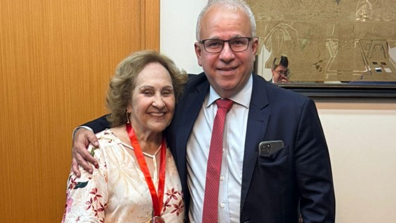 Bastante ativa na administração da Amperj, Déa Araújo ocupou a diretoria de Aposentados antes de Luiza de Mattos. Ela não pôde participar do evento comemorativo de 50 anos das turmas de 1974, na sede da associação em agosto do ano passado. Por isso, ela recebeu a visita especial para a entrega da comenda concedida aos demais colegas na ocasião.