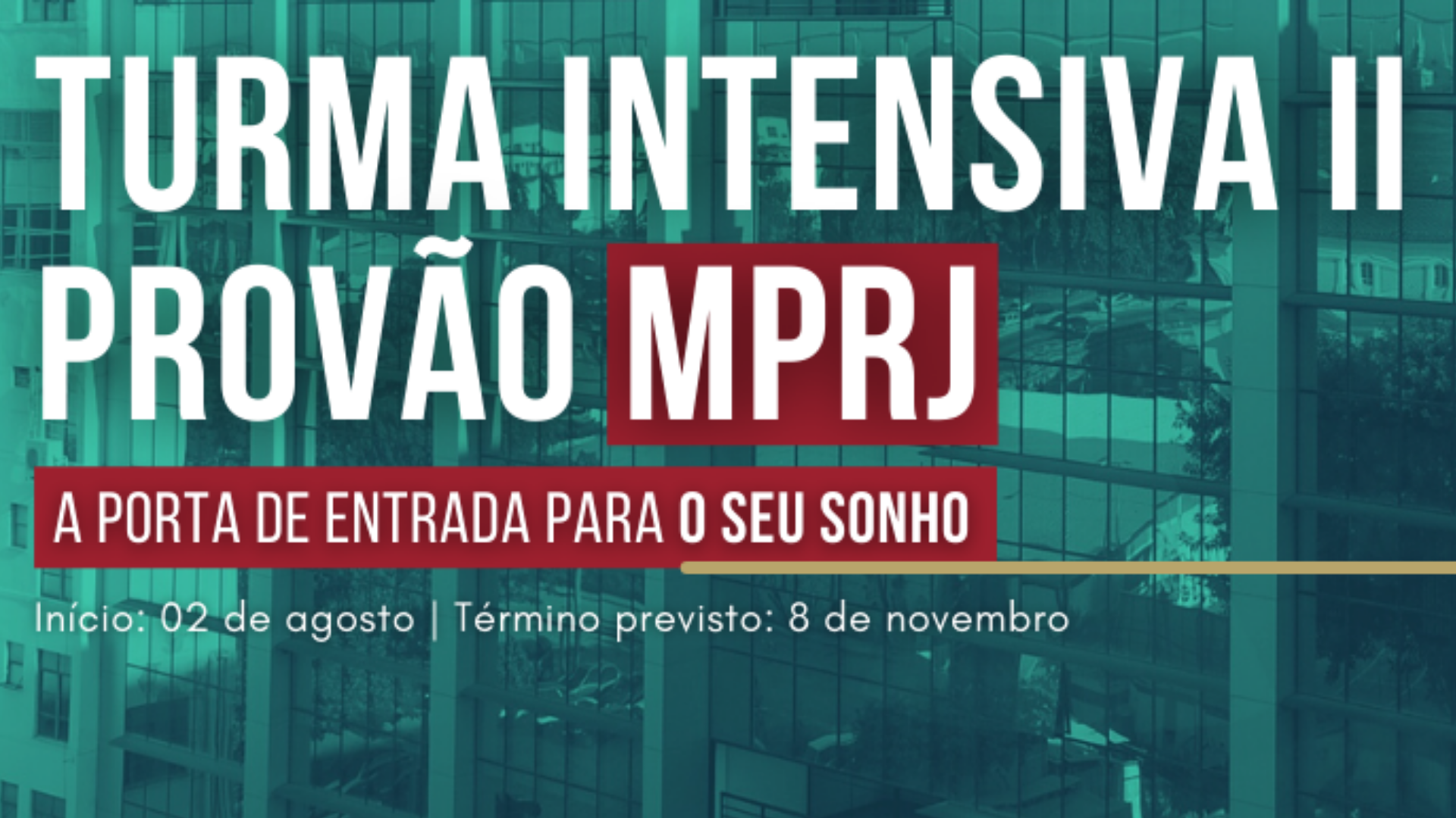 Estão abertas as matrículas para a Turma Intensiva Provão MPRJ II, preparatória para o Concurso de Ingresso na Carreira do MPRJ, a ser realizado ainda neste ano. Lançada por conta do sucesso da primeira turma, as aulas de teoria vão abordar os principais pontos para preparação dos candidatos. Lei...