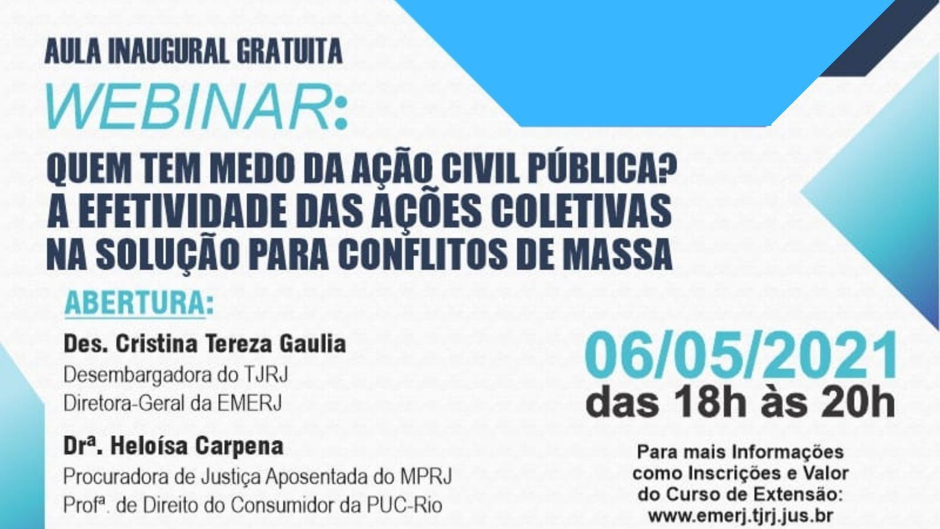 A Escola da Magistratura do Estado do Rio de Janeiro (Emerj) transmite nesta quinta-feira (6), a partir das 18h, palestra do ministro do STJ Antonio Herman Benjamin. Ao vivo pelo YouTube, ele falará sobre o tema “Quem tem medo da ação civil pública? A efetividade das ações coletivas na solução de co...