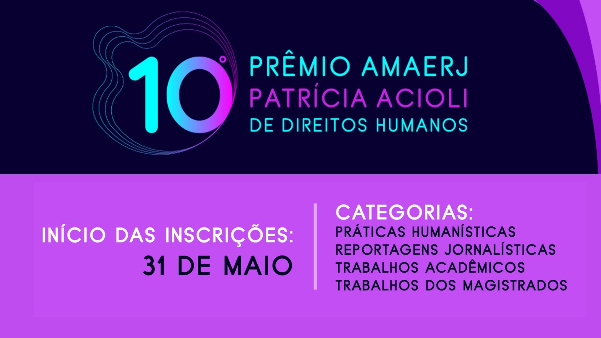 Em sua 10ª edição, o Prêmio Amaerj Patricia Acioli de Direitos Humanos receberá inscrições a partir de 31 de maio de 2021. São quatro categorias laureadas pela Associação dos Magistrados do Estado do Rio de Janeiro: trabalhos acadêmicos, práticas humanísticas, trabalhos dos magistrados e reportagens...