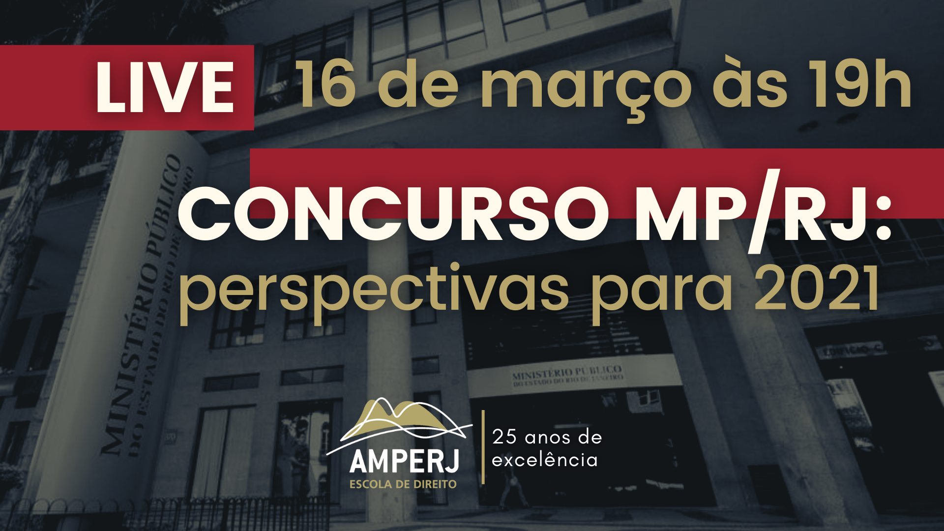 A EDA (Escola de Direito da Amperj) promove na próxima terça-feira (16) um bate-papo sobre a perspectiva de realização em 2021 de um Concurso de Ingresso na Carreira do Ministério Público do Estado do Rio de Janeiro. A live vai ser transmitida no perfil oficial da EDA no Instagram a partir das 19h e...