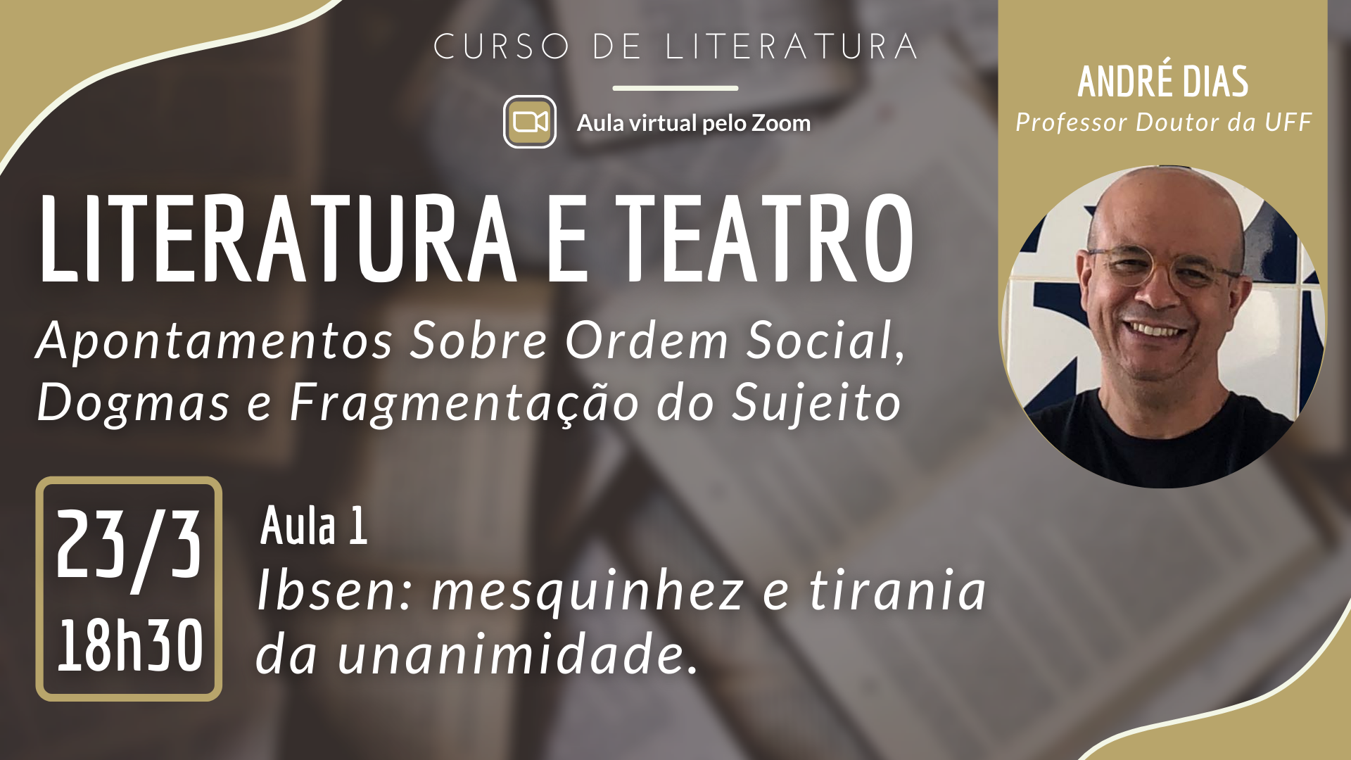 A leitura e o debate de romances e peças teatrais são o ponto de partida para uma reflexão sobre aspectos sociais, históricos e existenciais do passado e do presente. Com essa premissa, o professor André Dias ministra dia 23 (terça-feira) a primeira aula do curso “Literatura e Teatro: Apontamentos S...